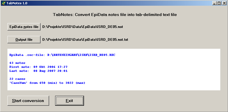 TabNotes is a utility to convert .not-files created by the EpiData Entry program